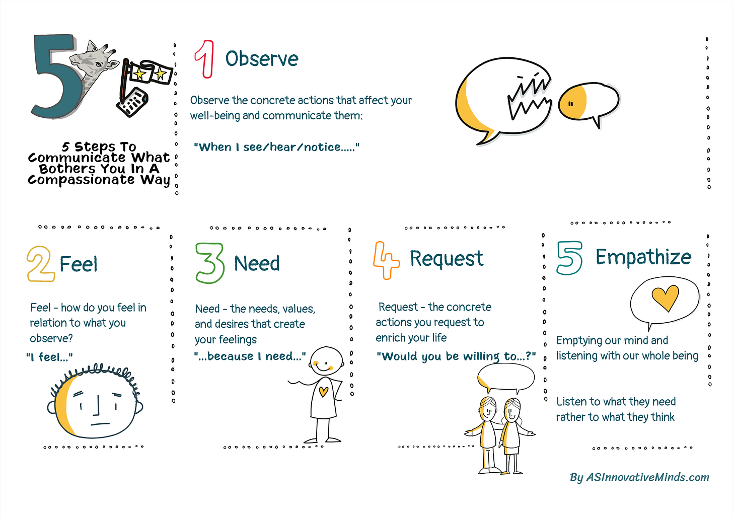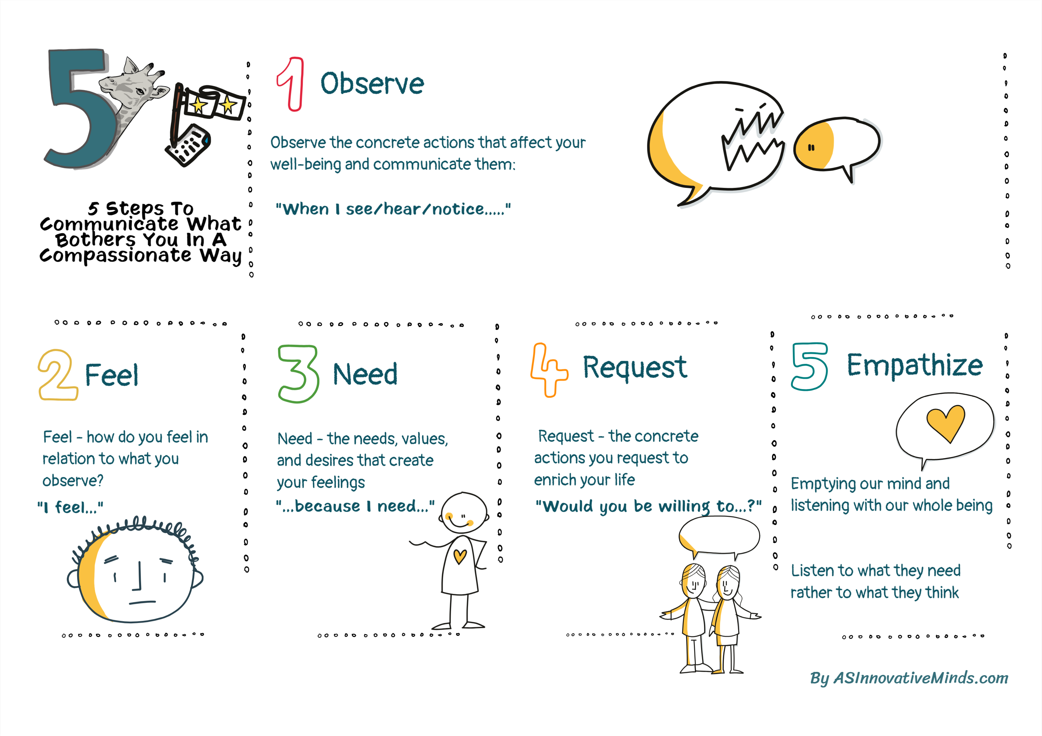 This post is about five simple steps that you can use to express what bothers you in a compassionate way, without creating any conflict or an unsafe environment.